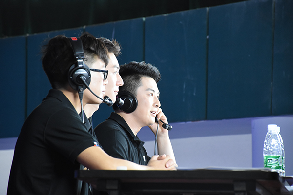 Members supply commentary for one of their team's matches. [Photo/provided to chinadaily.com.cn]