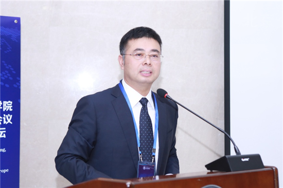 Gao Yan, vice president of Beijing Jiaotong University, delivers a speech at the meeting. |