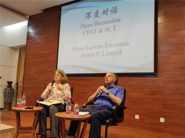 An academic dialogue between Professor Diane Larsen-Freeman, the proponent of the complex dynamic system theory, and Professor James P. Lantolf, the leader of the social and cultural theory, was held on Tuesday in Xi'an, Shaanxi province in Northwest China.
