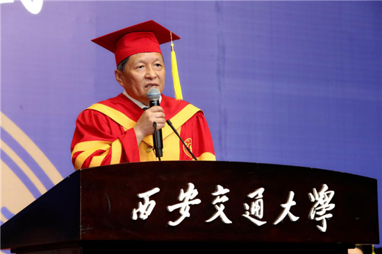 Wang Shuguo, president of Xi'an Jiaotong University, addresses at the graduation ceremony of his school held on Saturday. |