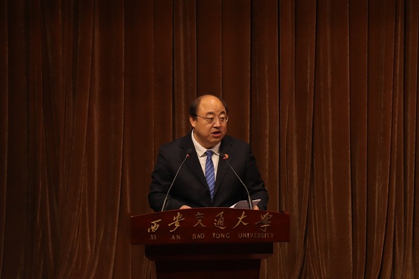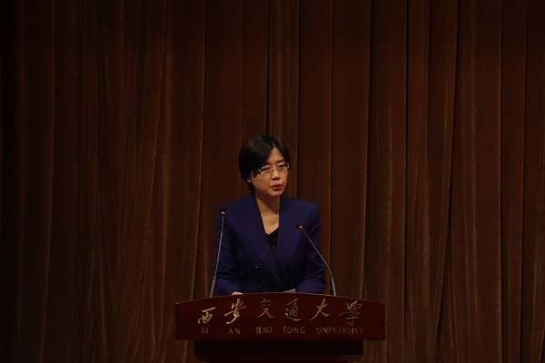 Gong Hui, deputy Party secretary of the XJTU committee, introduces XJTU's achievements in education and scientific research. [Photo provided to chinadaily.com.cn] |