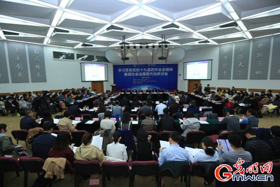 A seminar on implementing the spirit of the Fourth Plenary Session of the 19th CPC Central Committee and advancing the modernization of social governance is held in Beijing on Nov 9. [Photo/gmw.cn] |